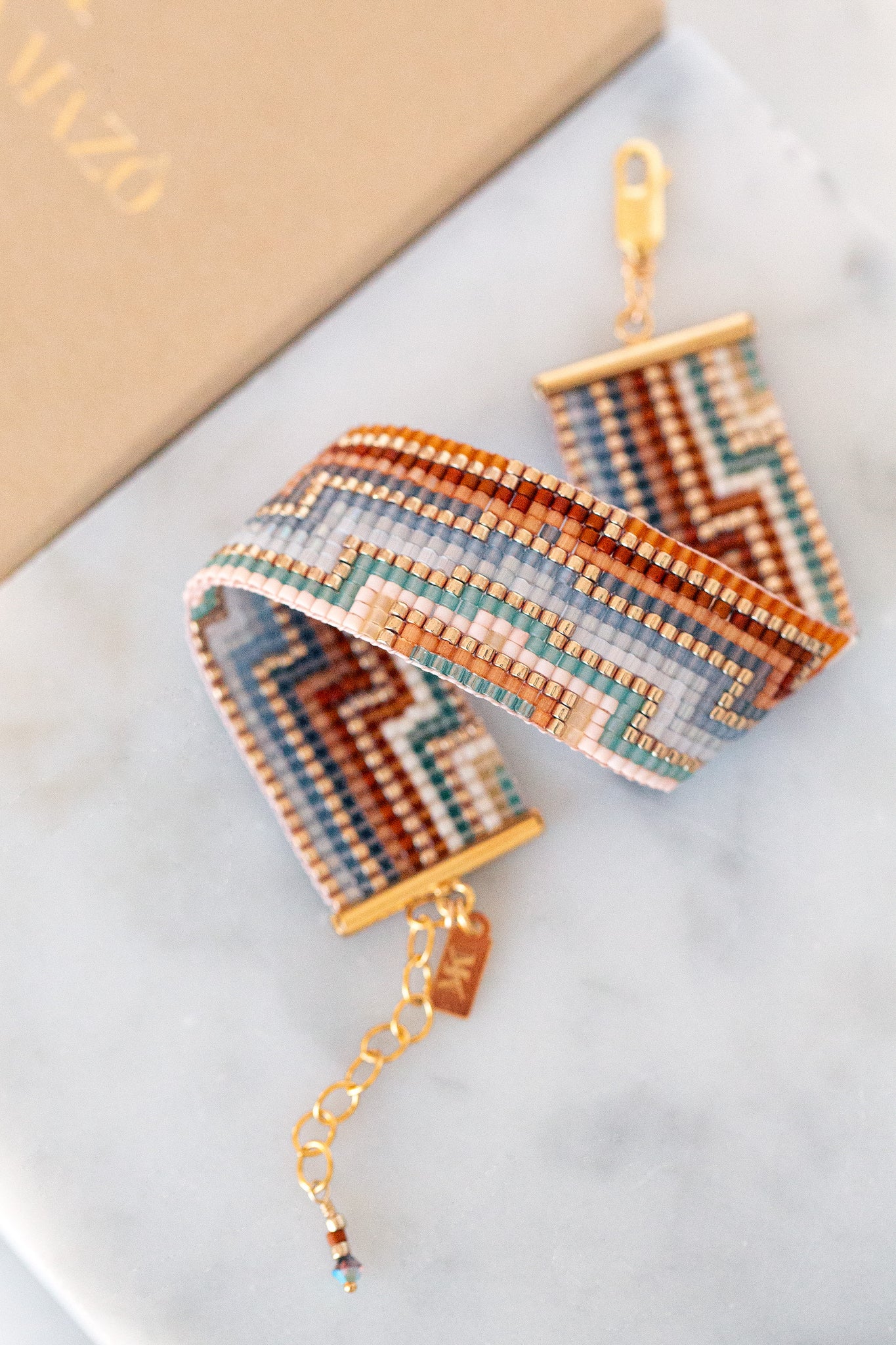 Woven bracelet made of glass beads with a width of 2 cm.