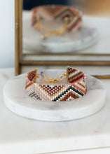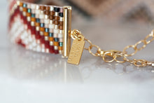 Bracelet tissé en perle de verre d'une largeur de 1,5 cm.